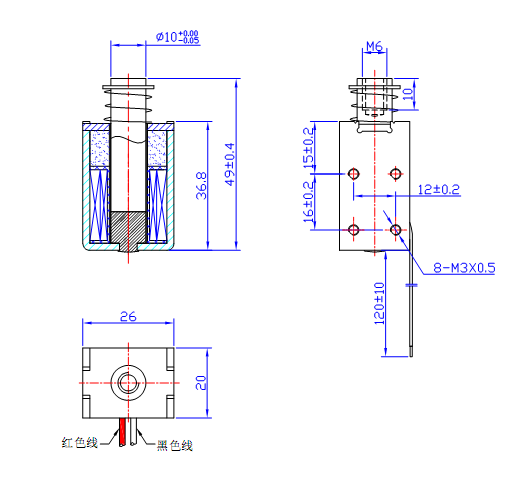 1,保持式電磁鐵尺寸圖: