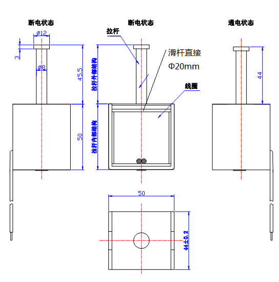 產(chǎn)品尺寸:50*50*44 (mm)具體尺寸如下圖: