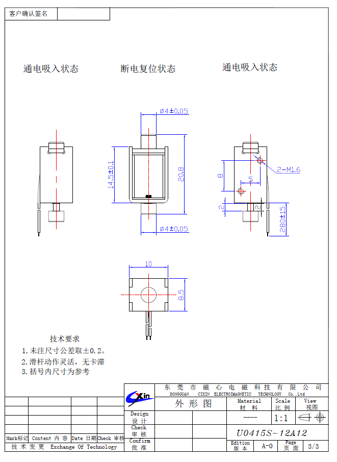 U0415推拉電磁鐵參數:
