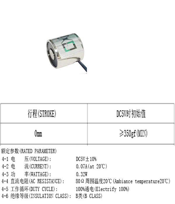 微型吸盤電磁鐵的吸力:350g正負10%