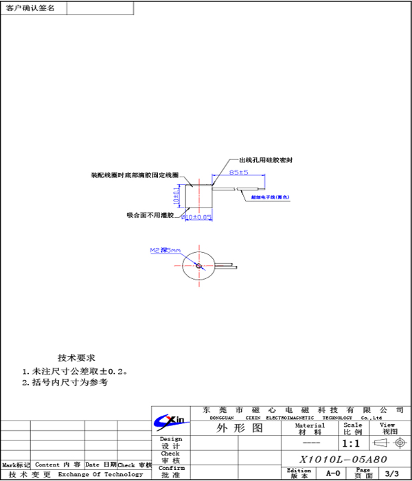 X1010微型吸盤電磁鐵的尺寸為:   直徑10mm    *   高度10mm