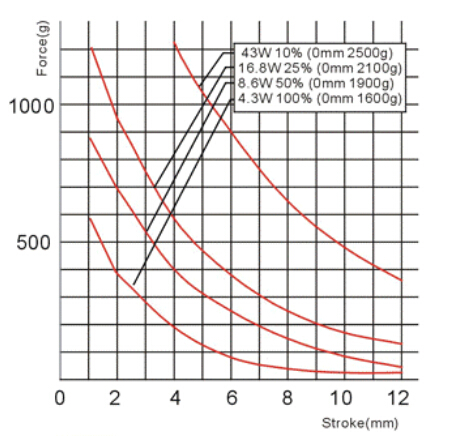 圖解:1,上圖描述的是推拉式電磁鐵的行程和力量曲線圖